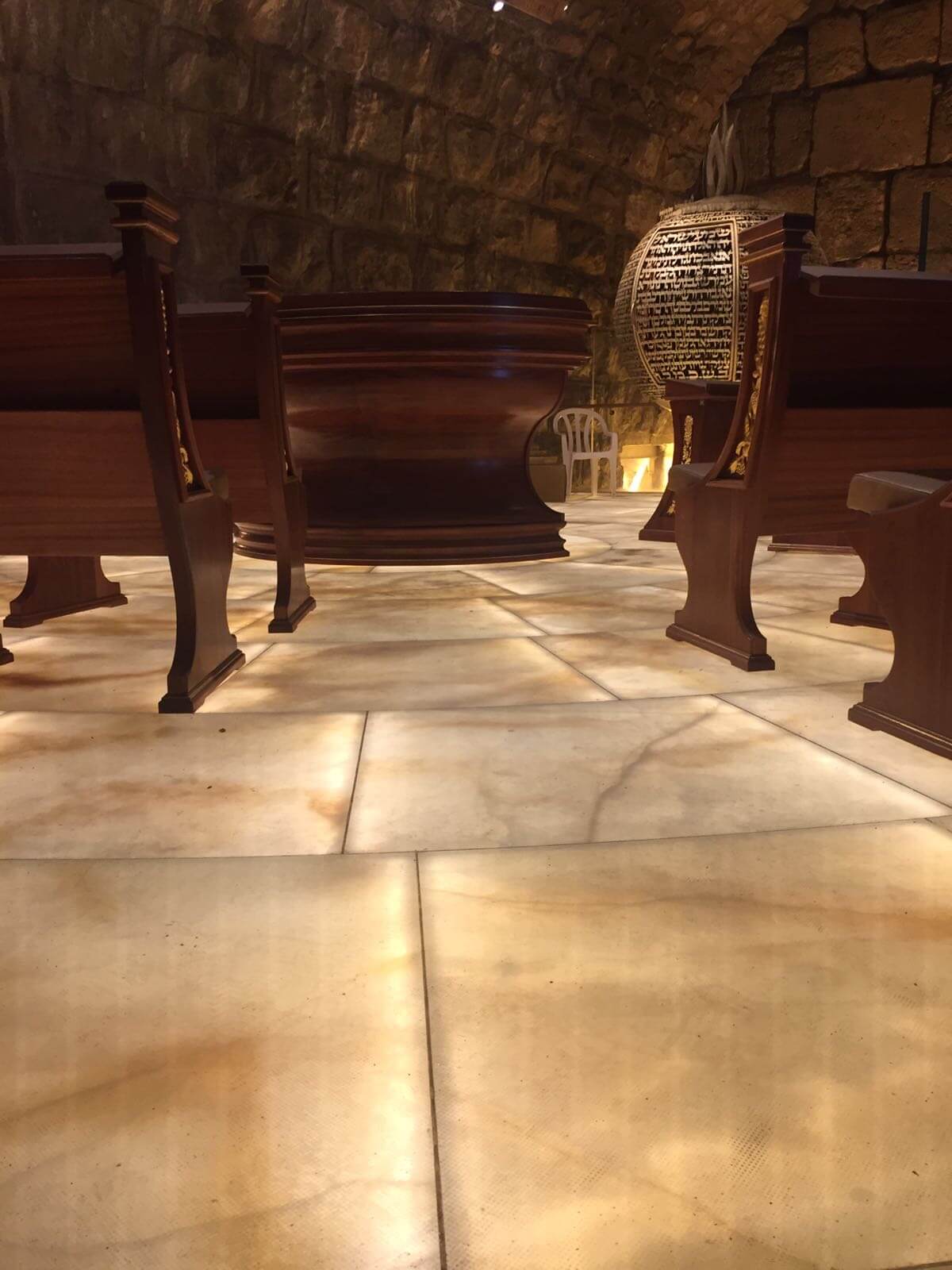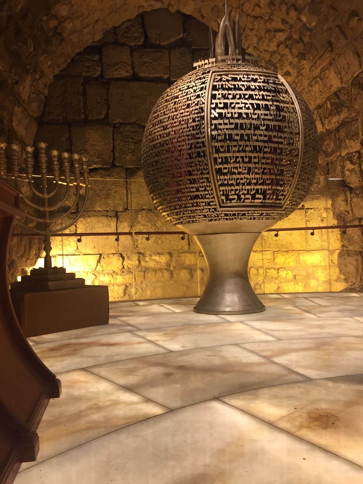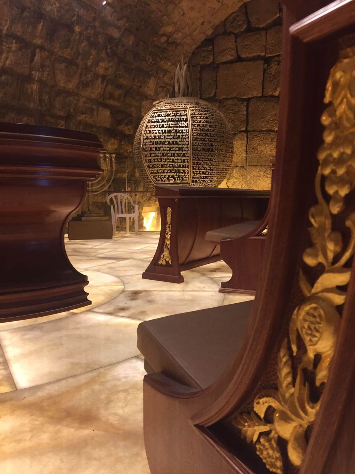 This magnificent Synagogue is the result of 12 years of structural support, construction, and archaeology work, during which various activities were carried out to maintain and preserve the integrity of the imposing cave where it is located, facing the "Great Stone" in the Western Wall tunnels, near the site of the Holy of Holies.